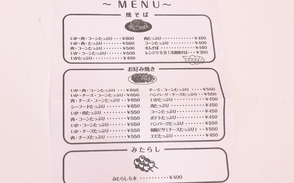 リーズナブルでおいしい焼きそばとお好み焼きをぜひ食べてみてくださいね。