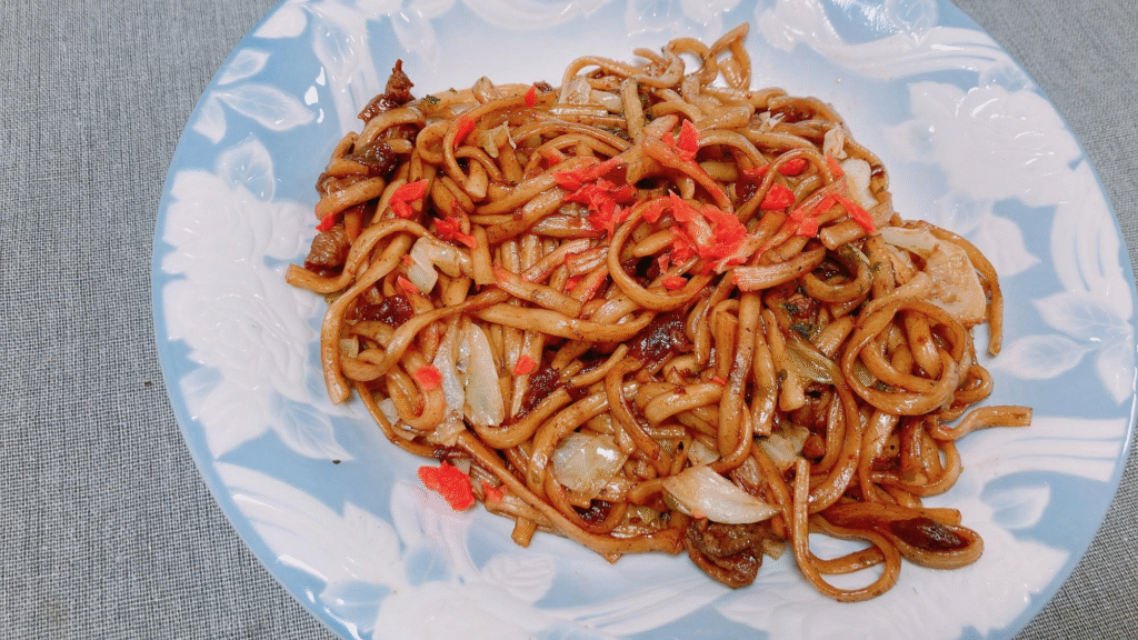 プチコアンの焼きそばは、麺が平たくてもっちもち!