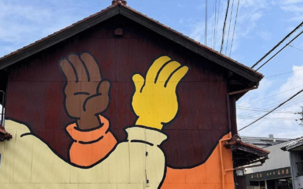 遠目にも目立つ壁面アートはアーティスト『タナカナーリー』さんの作品です。