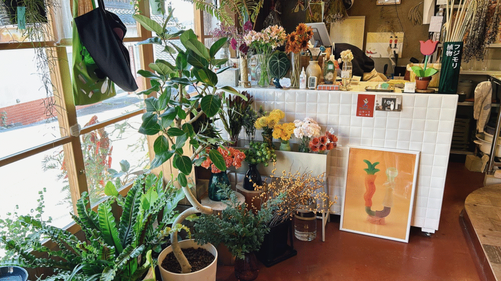 店内には生花店『フジモリ植物』も入っています。