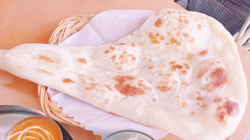 目算ですが40~45cmはありそうな大きなナンは、焼きたてアツアツもっちもち!