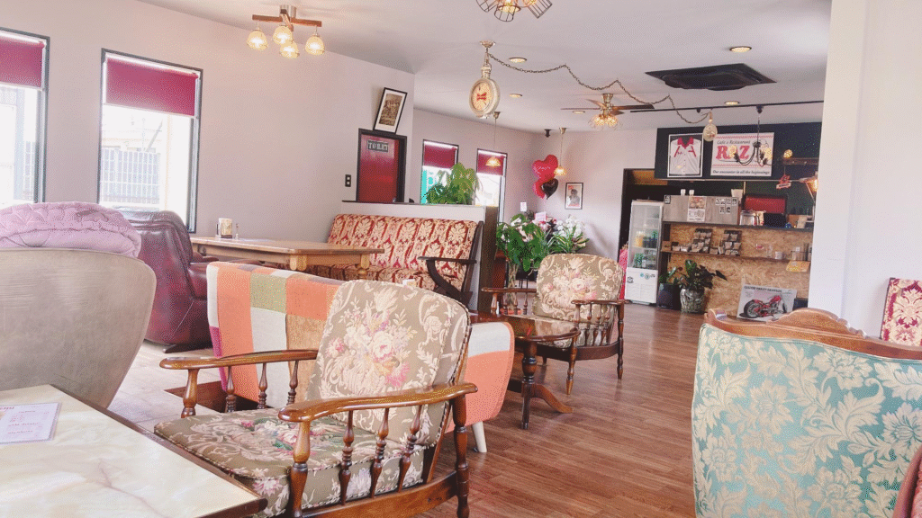 広い店内はヴィンテージ感のある家具でそろえられており、ソファー席が多めなのでゆったりとくつろぐことができる雰囲気です。