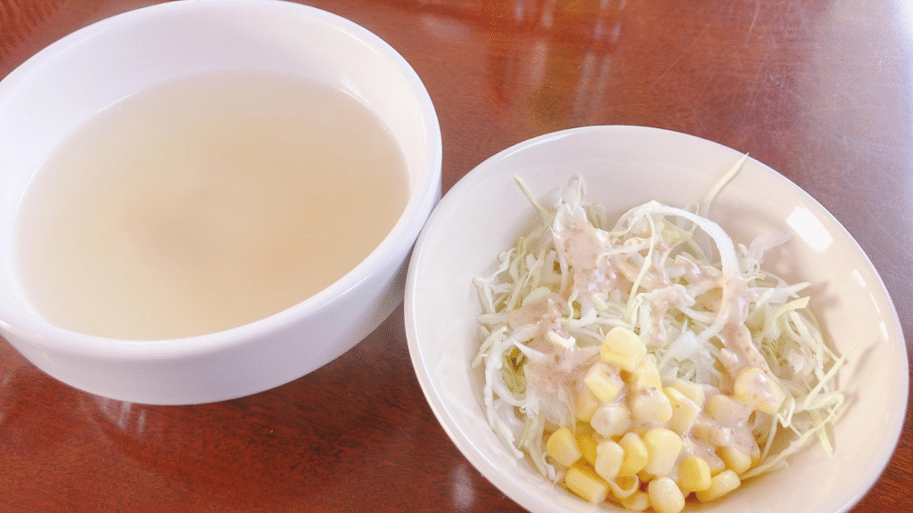 ランチタイムはライス・サラダ・スープが無料でつけられてお得です。
