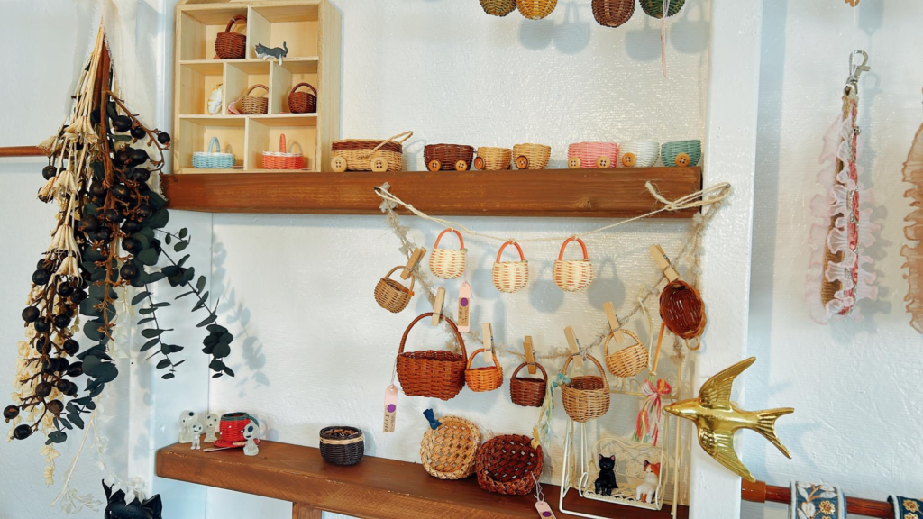 手作りの小さなカゴは並べるだけでかわいいインテリアに!