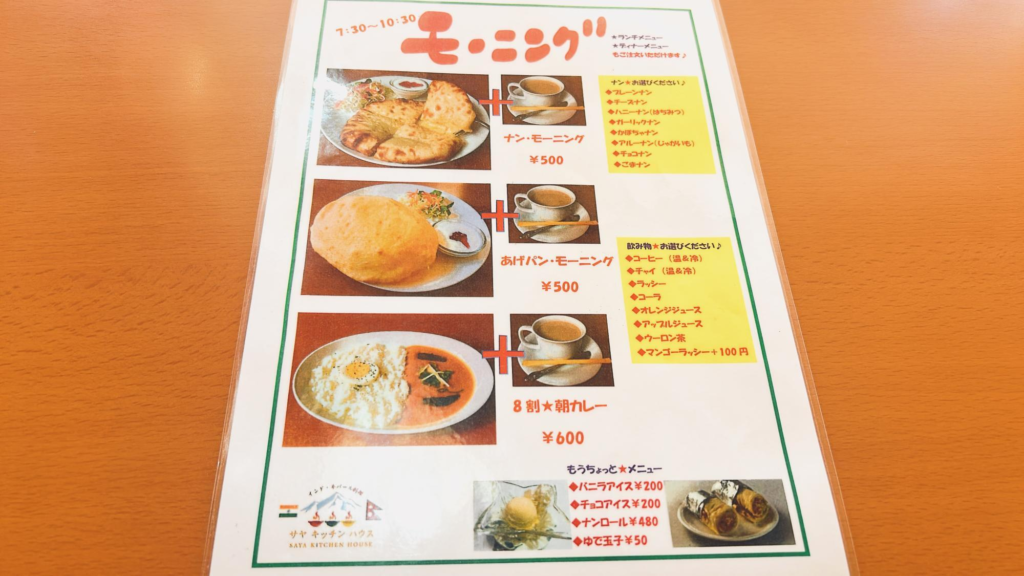 500円でナンやあげパンが楽しめるお値打ちなモーニングもありましたよ。