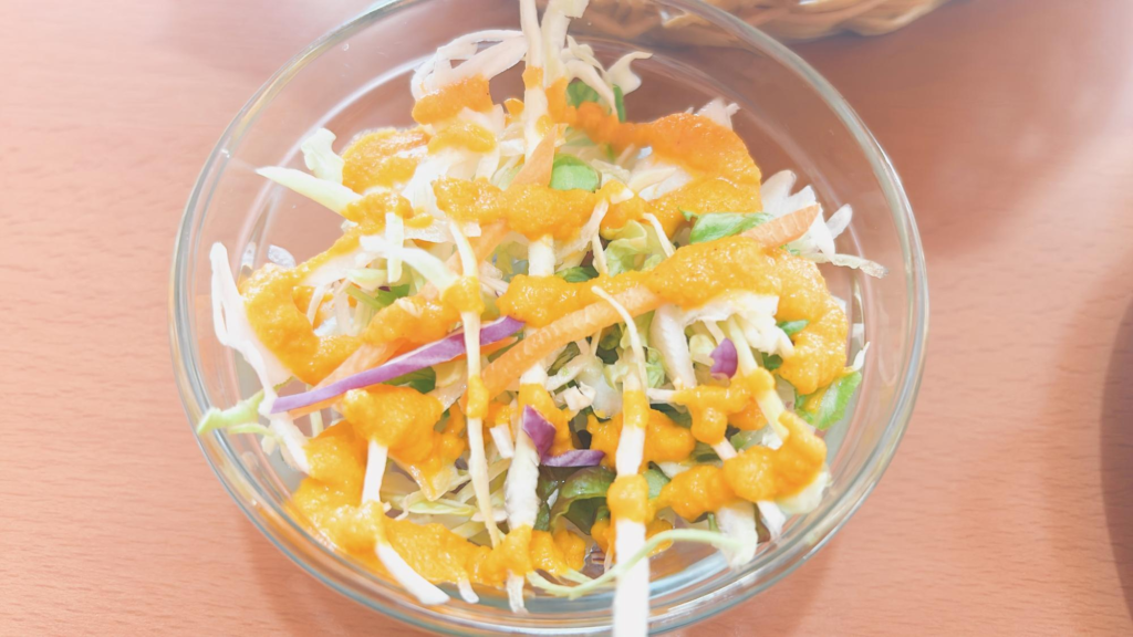 インド料理屋さんでよく見かけるオレンジ色のドレッシングですが、こちらのお店のものは特に野菜の甘みがしっかり感じられてとてもおいしかったです。