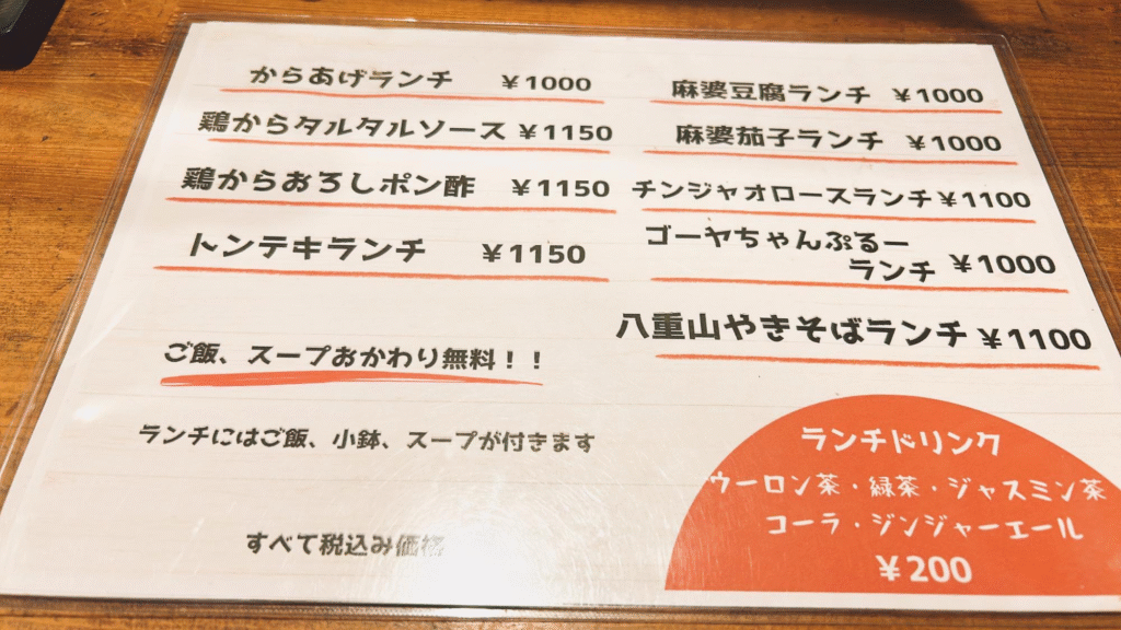 ランチメニューです。