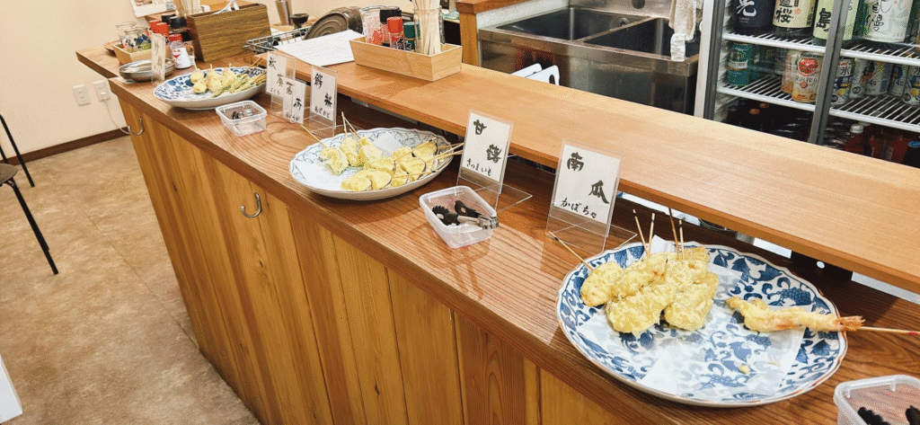 そのほか、カウンターに並んだ天ぷらはセルフサービスとなっています。