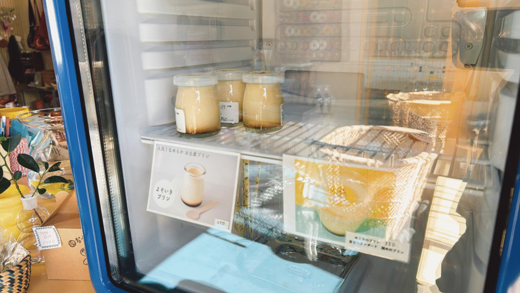 店内では淹れたてコーヒーの販売を行っているほか、いなべプリン店のプリンも買えます。