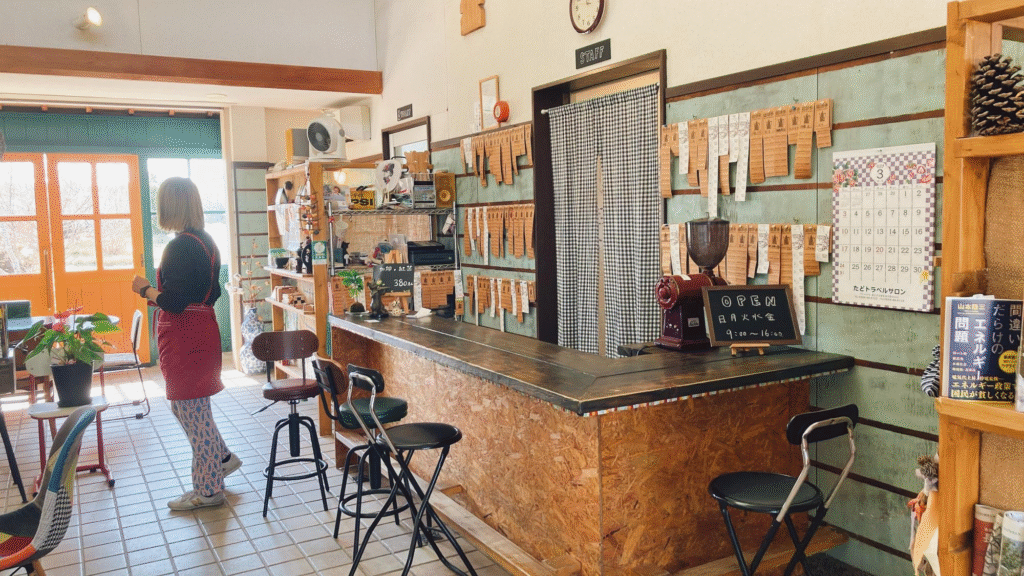 こちらのお店はもともとは農業用具が置かれた通路だったものを、手作りでカフェに作り替えたものなのだそうです。