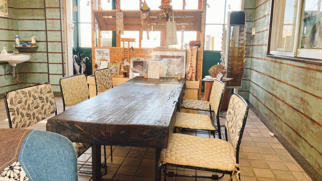 壁、テーブル、椅子などすべてが手づくりで、店内に飾られている小物もお店の方やお客さんの手作りの品などが多いそうですよ。