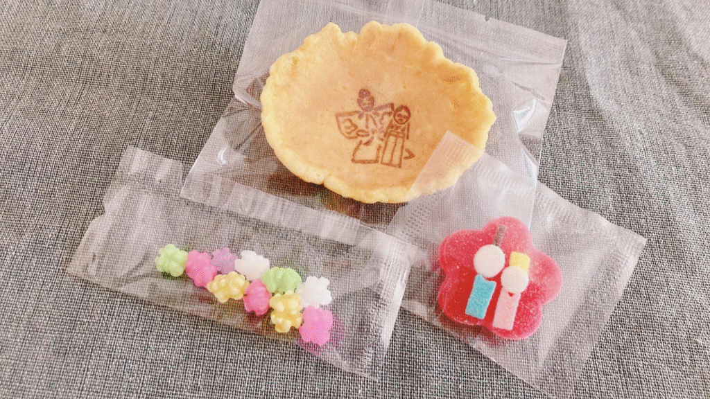 ほんのり甘いおせんべいに金平糖やゼリー菓子がセットになっています。