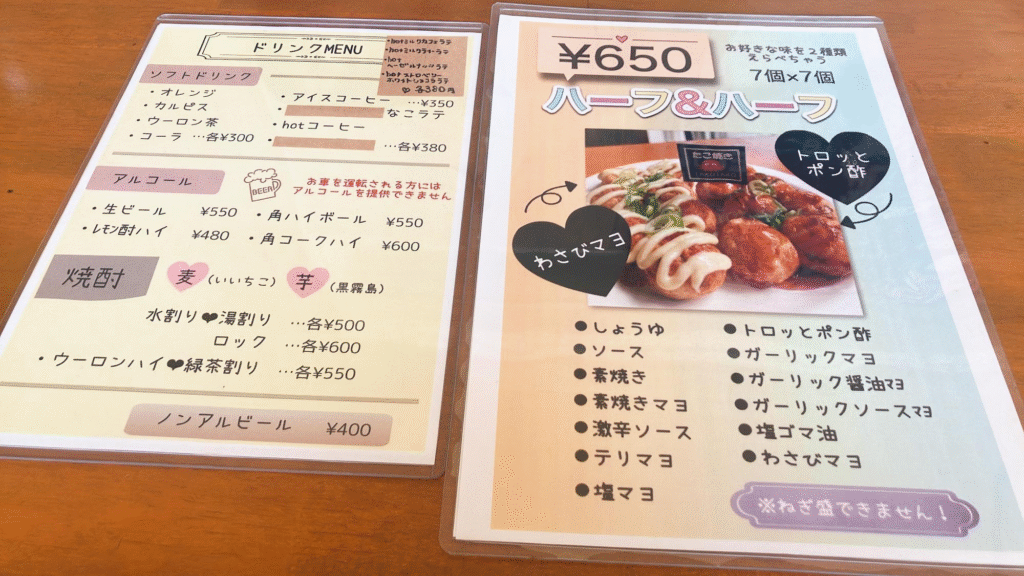 たこ焼きの種類に迷ったらハーフ&ハーフはいかがでしょうか。
