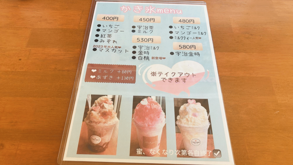 夏場はかき氷メニューも充実しているので、食後のデザートにも!