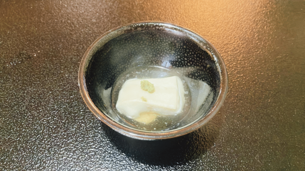 まず出てきたのは湯気が出るほど温かい胡麻豆腐です。