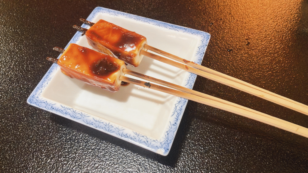 続いて焼きたての豆腐田楽は香ばしく、甘辛い味噌だれが堪りませんね。