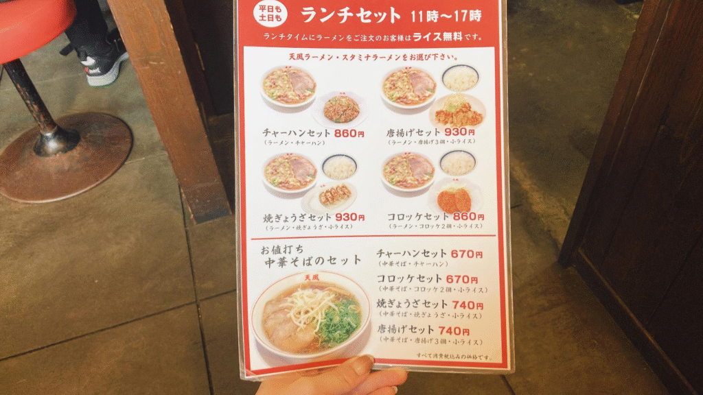 17時までランチタイムで、お値打ちなセットメニューが注文できるほか、単品のラーメンを注文してもライスが無料でつけられます。