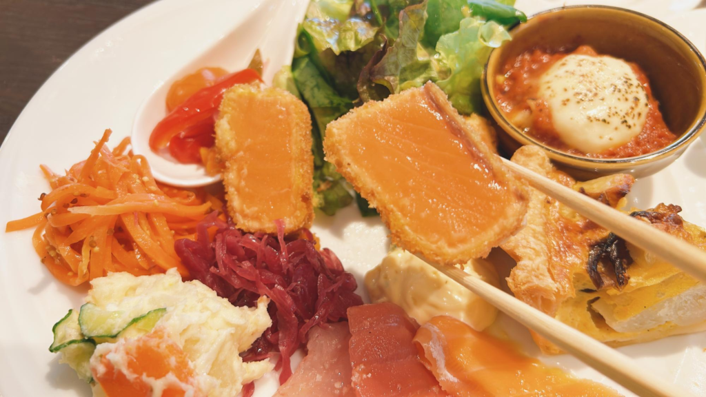 特製デリプレートは平日はメインが選べる形式になっています。※土日はサーモンのレアカツのみ