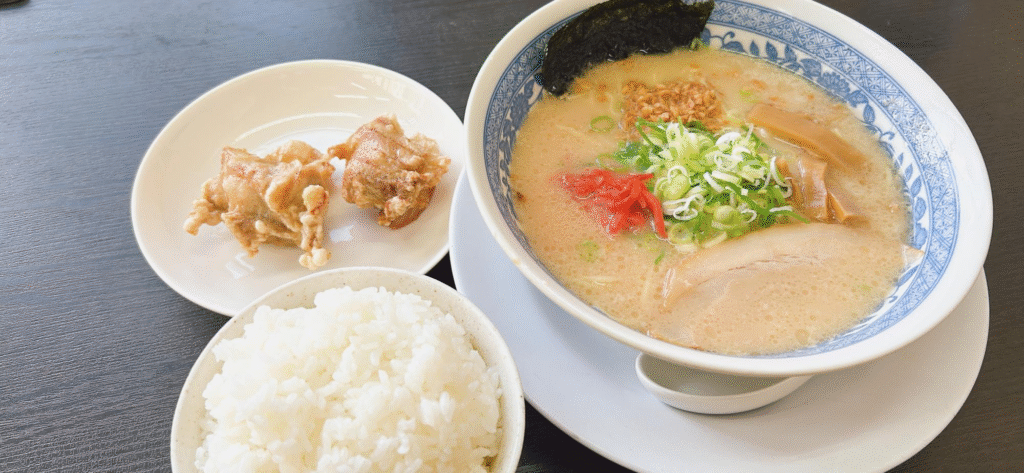 スープは一口目は濃厚ながら癖のない味わいだと感じたのですが、添えられた揚げニンニクを混ぜると一気にパンチが出てごはんが進む味に!