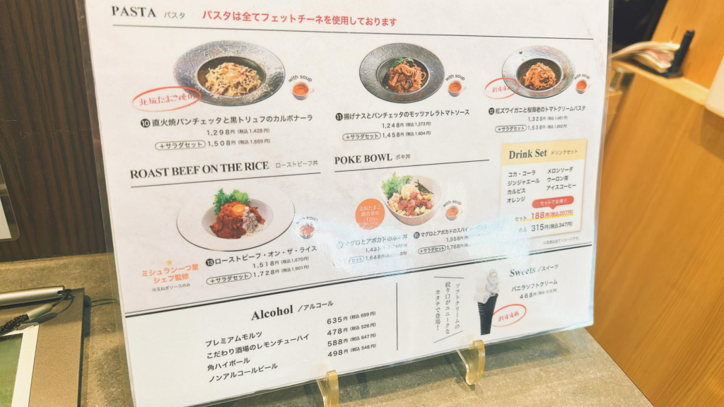 また、パスタやローストビーフ丼、ポキ丼などもあってどれもおいしそうで迷ってしまいました。