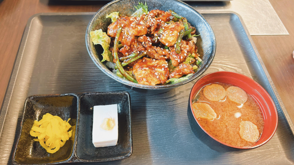 こちらは鶏いちの賄い丼(味噌とり焼き)です。