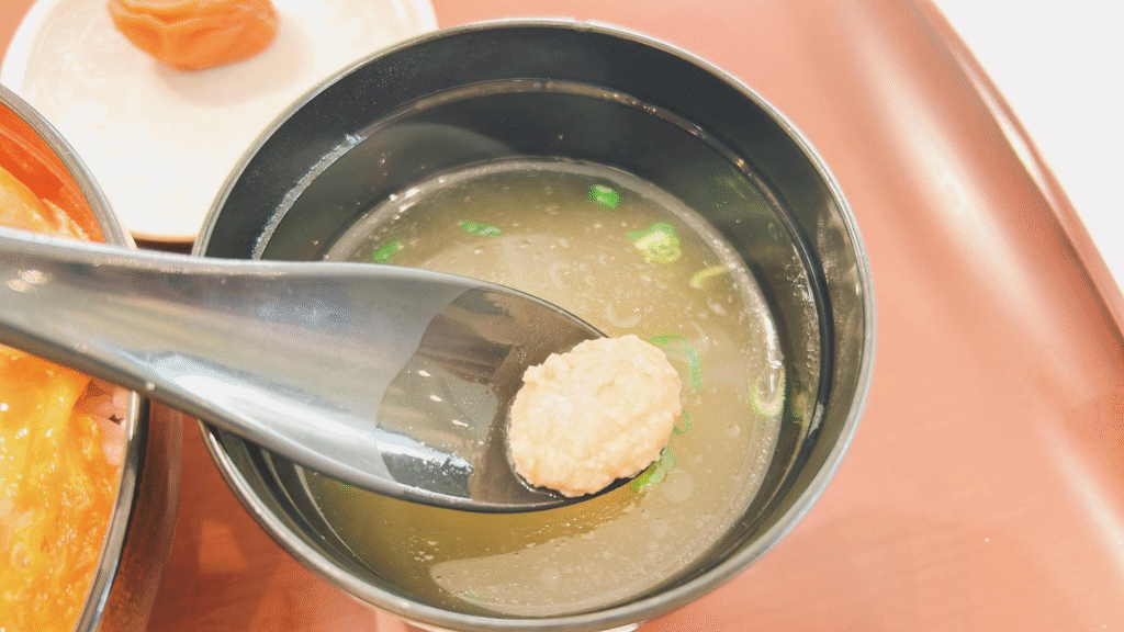 名古屋コーチンの鶏ガラから出汁をとったスープに、名古屋コーチン入りのつくねが入っています。