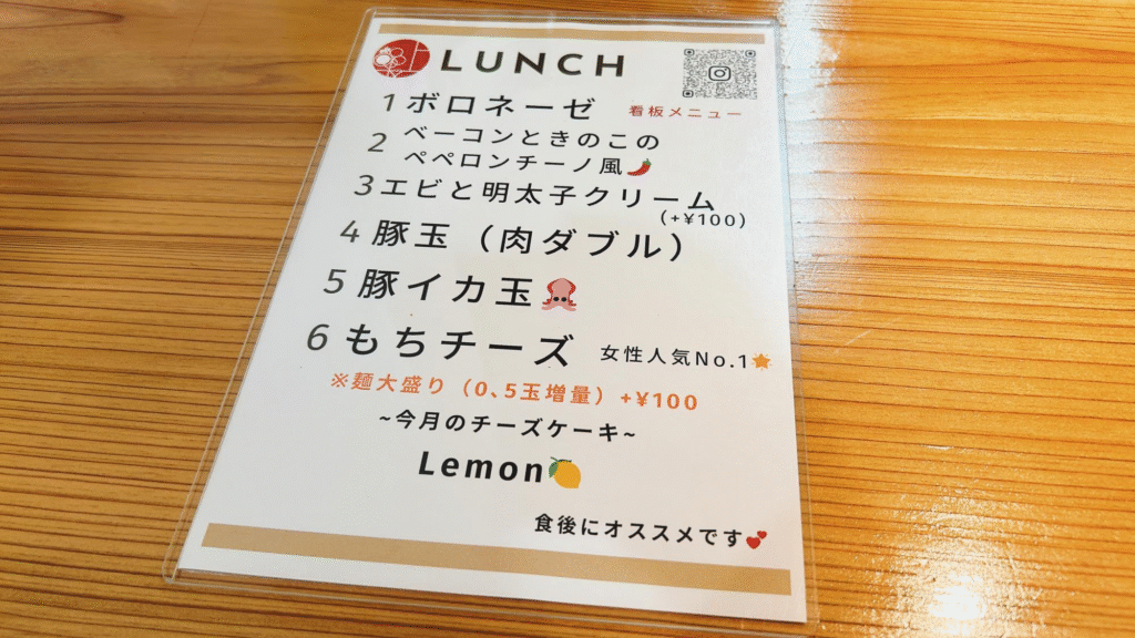 ランチメニューです。