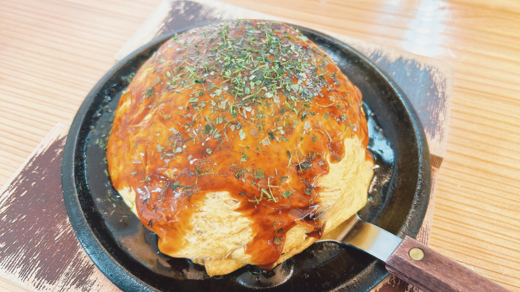 他店ではあまり見かけることがないドーム型のお好み焼きがオシャレですね。