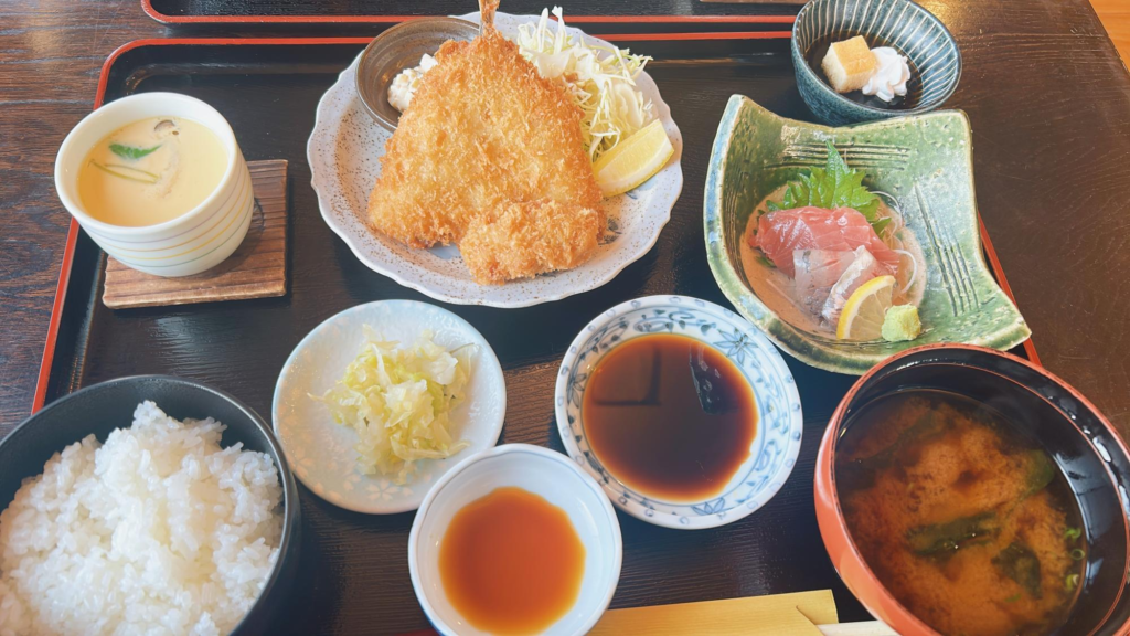 この日はアジフライがふっくらサクサクでおいしかったです。