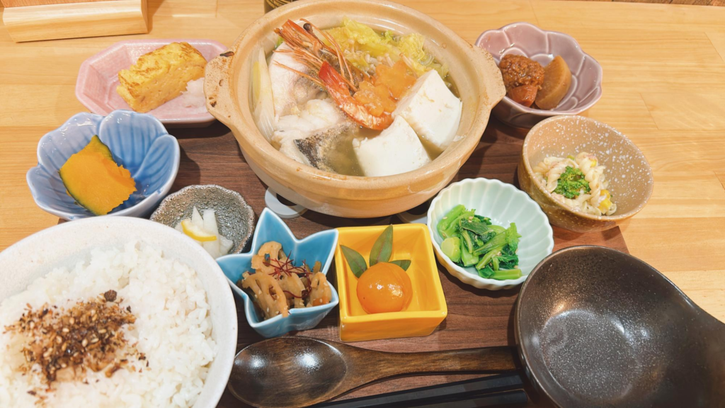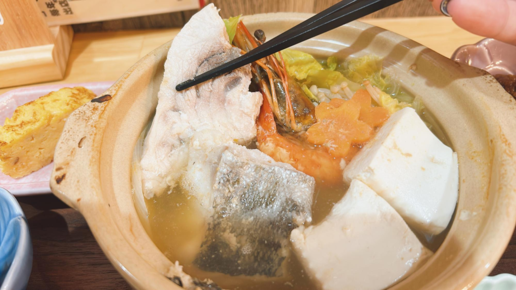 出汁の効いたスープに野菜やお魚がたっぷり!