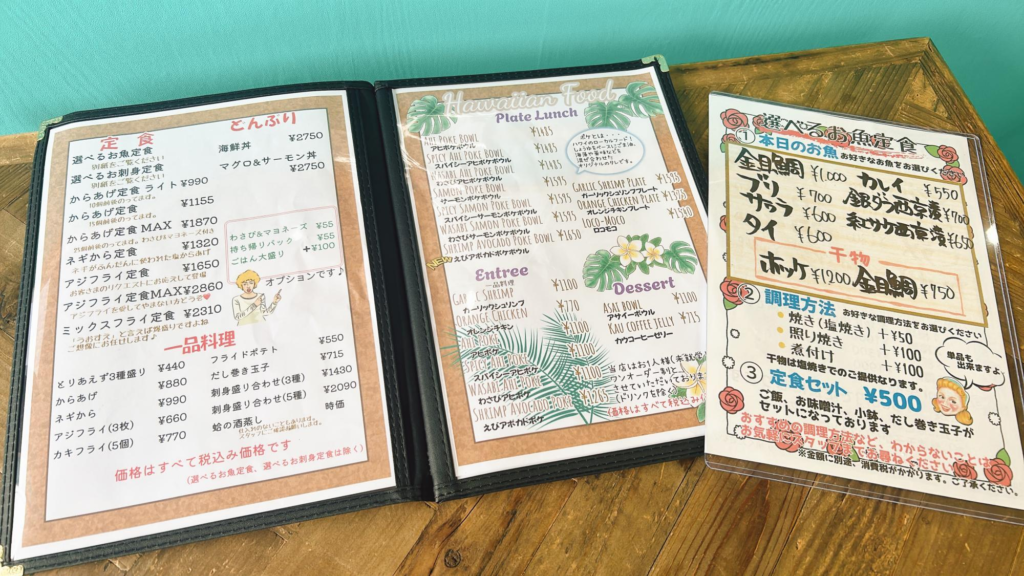 鮮魚店が営むレストランで、海鮮料理や各種定食、ハワイアン料理を楽しむことができます。