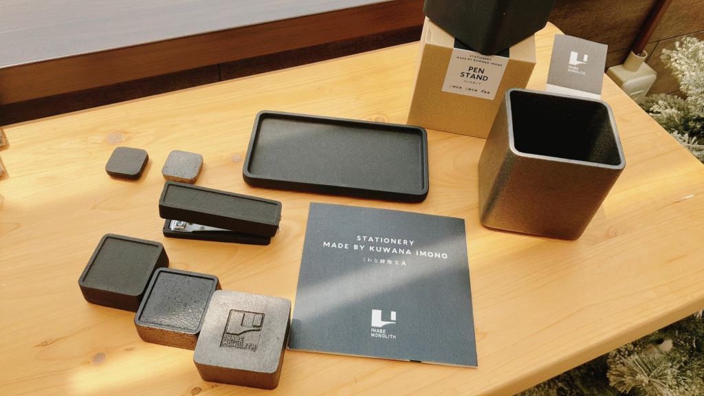 鋳物ならではの重さを活かしたペーパーウェイトのほか、簡単にずれることがないペン立てやトレーも便利です。