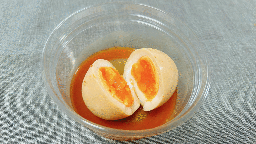 煮卵は程よい半熟で、やさしい味が染みていておいしかったです。