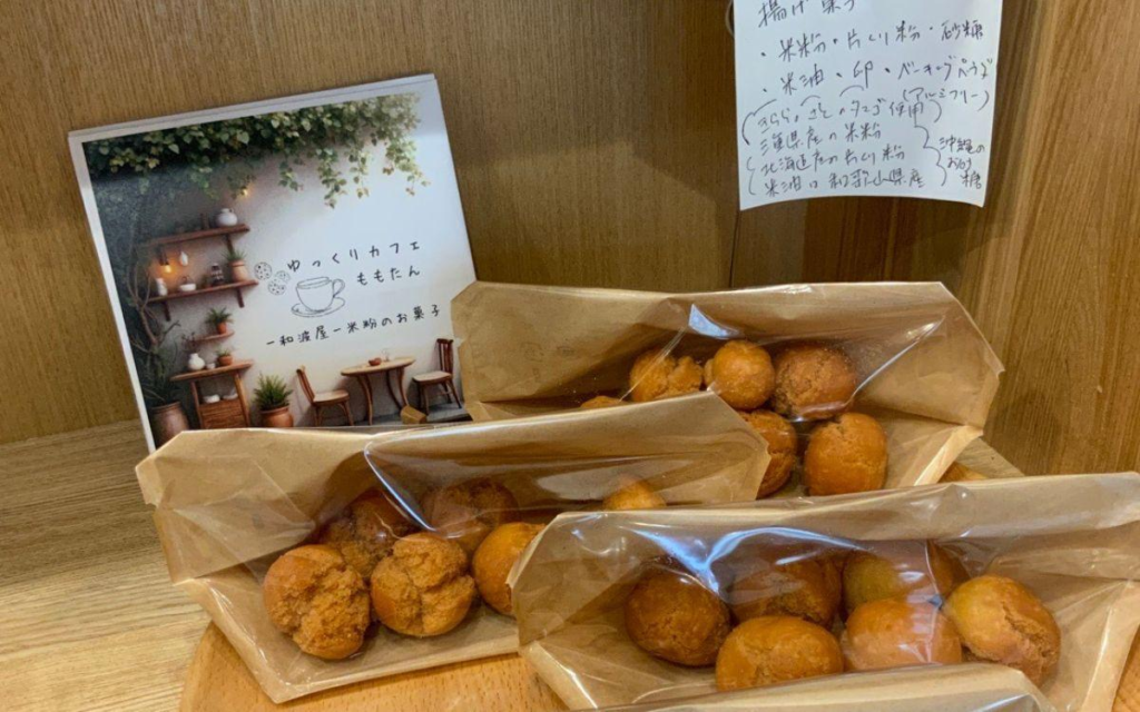 和波屋が最近手がけている事業の一つが、『はなれーhanareー』とのコラボレーションで、『ゆっくりカフェももたん』の新ブランドで米粉のお菓子を販売しています。
