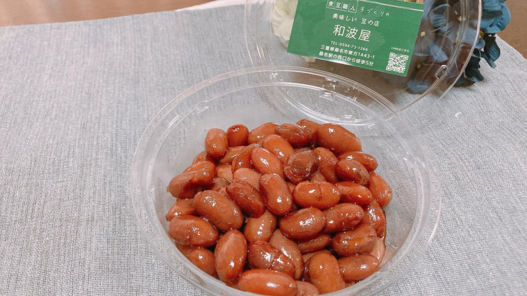 中に入っている煮豆は和波屋謹製の金時豆です。