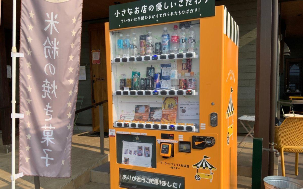 コーヒー豆や米粉の焼菓子は店舗前に設置された自動販売機で購入することもできます。