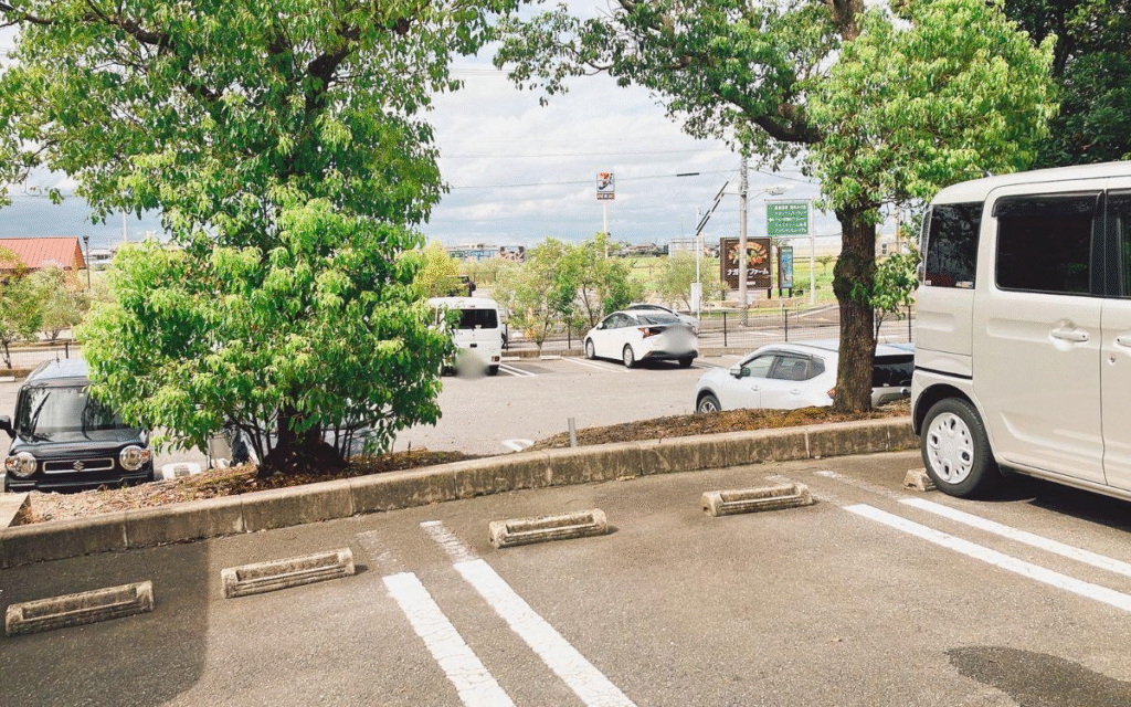 木立や出入りする車を眺めつつのんびり休憩ができますよ。