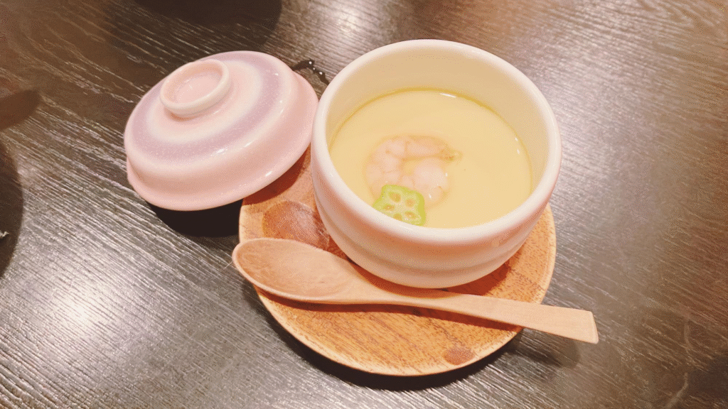 出汁が効いた茶碗蒸しはホッとするお味です。