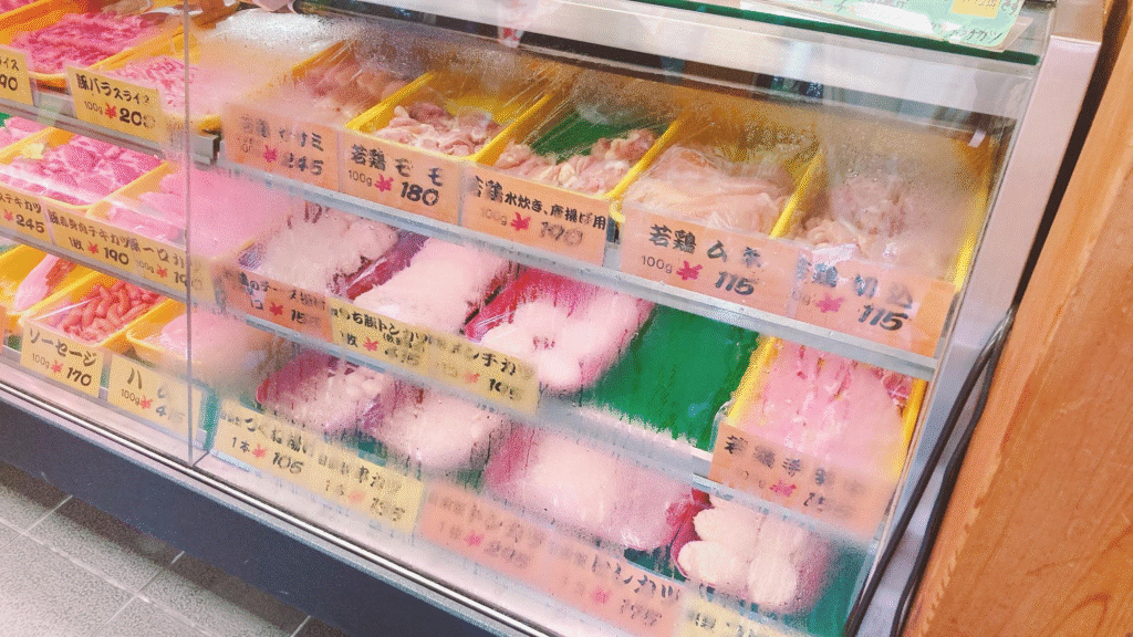 揚げ物はコロッケやトンカツ・メンチカツなどが揚げていない状態で並んでいます。