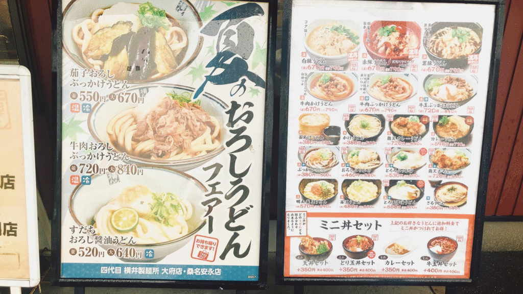 定番メニューだけでなく、季節に合わせたうどんが並んでいます。