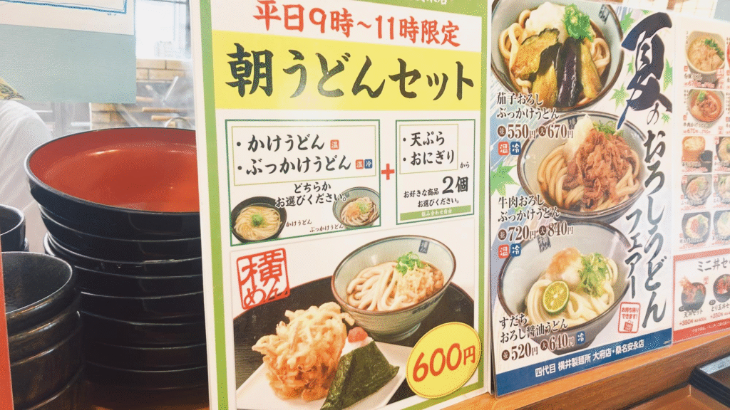 自分好みの組み合わせで、お値打ちな朝うどんを楽しんでみてはいかがでしょうか。
