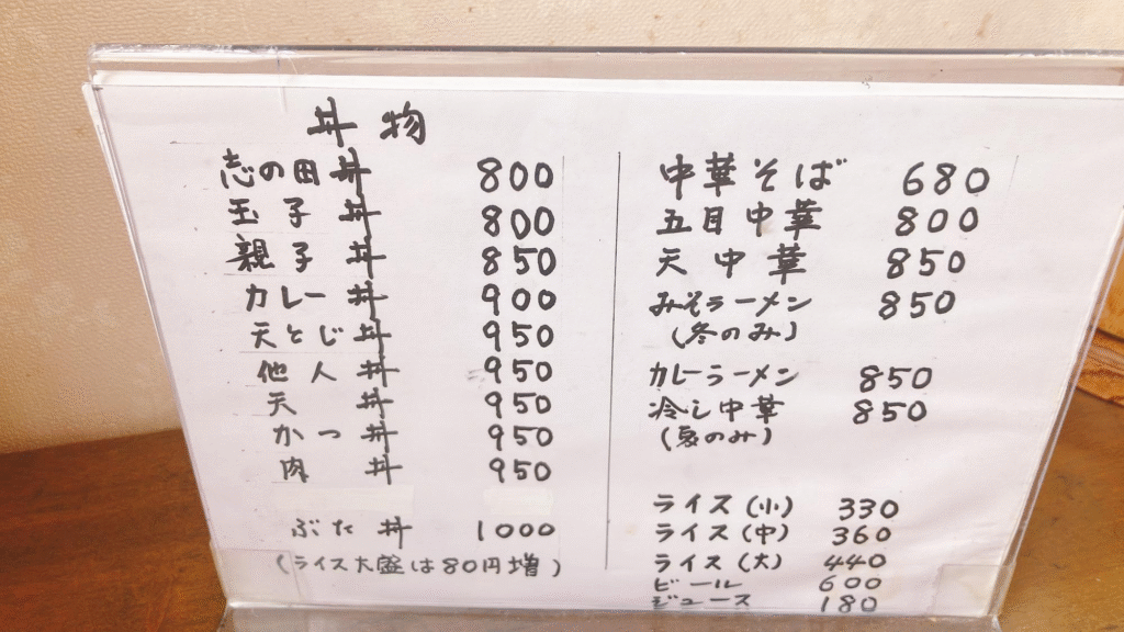 益生駅の近くにある昔ながらの麺類や丼物のお店です。