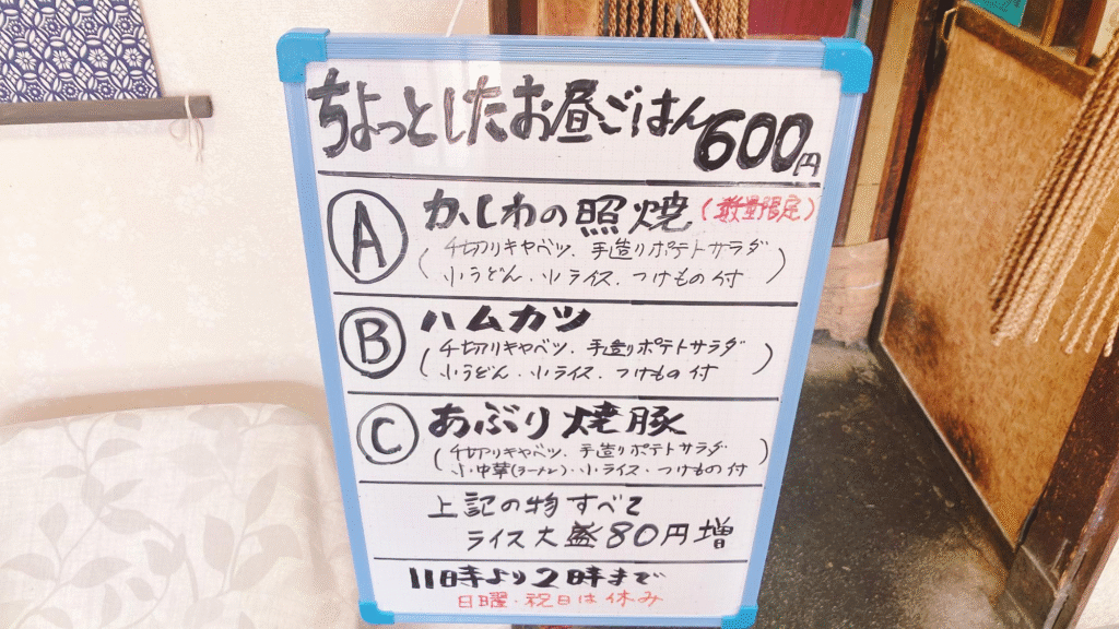 日祝以外は注文できるちょっとしたお昼ごはんは3種類から選ぶことができます。